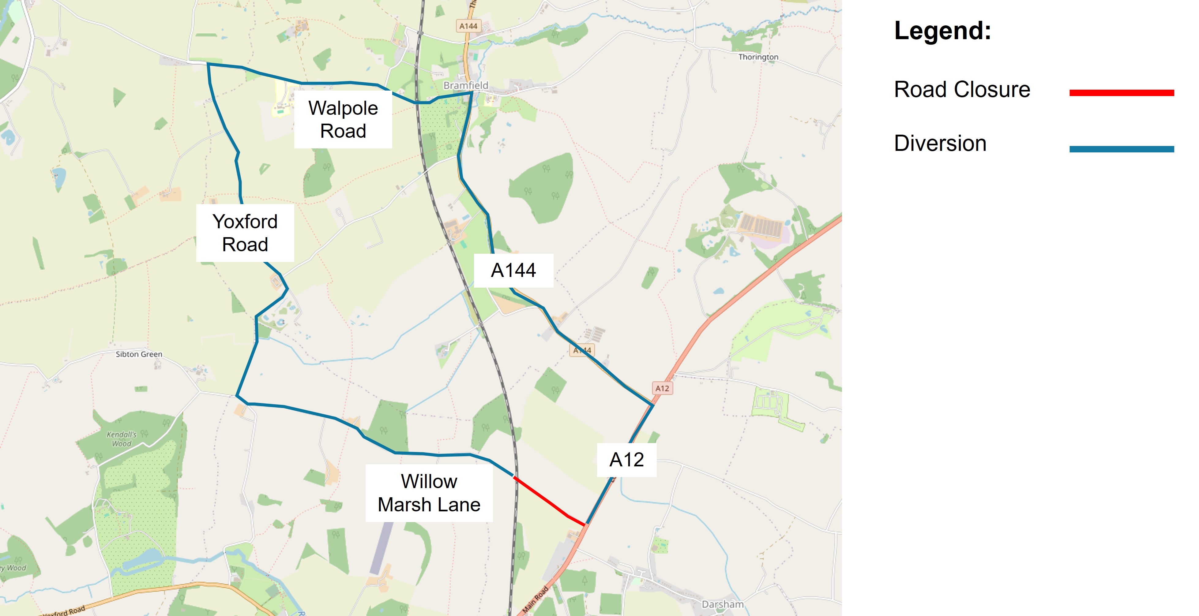 We have liaised with Suffolk County Council to agree the most appropriate traffic management measures. We have sought to keep roads open as much as practicable to minimise the potential disruption to the community, but this has not always been possible and some road closures are required for safety reasons.